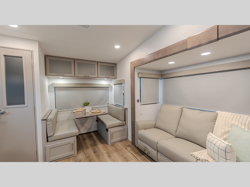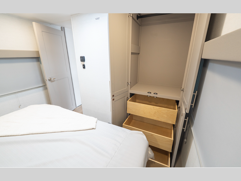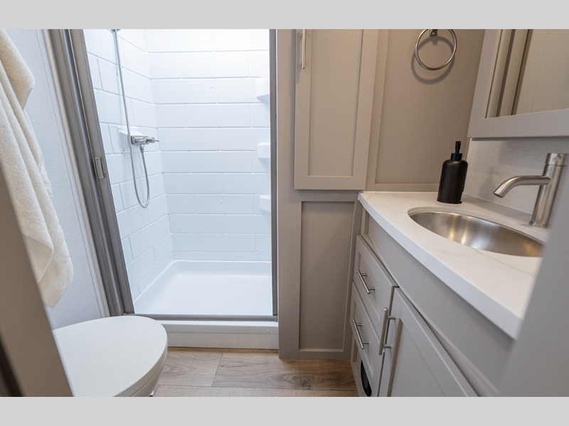 The composite sidewalls are ultra durable and the Benchmark chassis features a super saver upper deck. There are industry leading tank sizes, smart storage solutions, flush floor slide out floors throughout, and no carpet to make cleaning easier than ever.