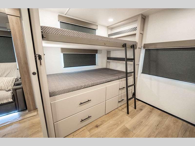 Sleeps 7 Slides 1 Length 33 ft 11 in Ext Width 0 ft Ext Height 11 ft 3 in Int Height 0 ft Hitch Weight 872 lbs GVWR 9250 lbs Dry Weight 7388 lbs Fresh Water Capacity 45 gals Grey Water Capacity 82 gals Black Water Capacity 45 gals Number Of Bunks 2 Available Beds Queen Refrigerator Type 12 Volt Refrigerator Size 10 cu ft Cooktop Burners 3 Shower Size 30" x 36" Number of Awnings 1 Cargo Deck Size 0 ft TV Info LR 40" TV Awning Info 21' Axle Count 2 Shower Type Standard Electrical Service 50 amp Solar Wattage 400 watts Similar Floorplans
