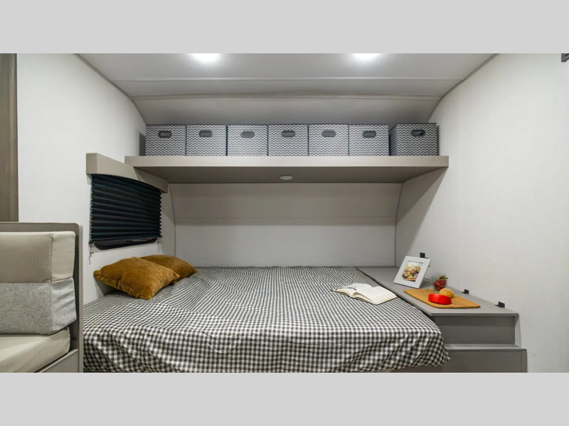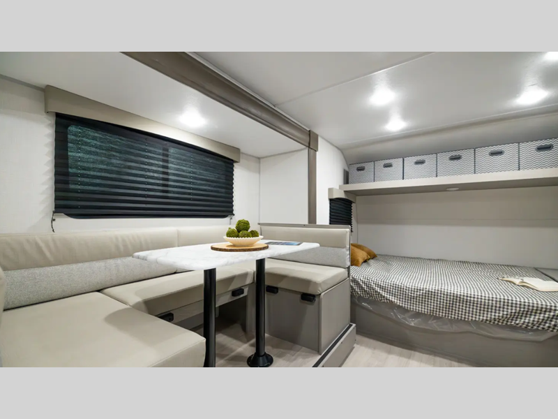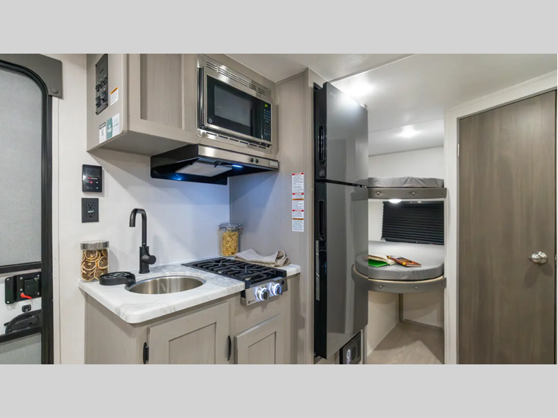 Sleeps 7 Length 23 ft Ext Width 8 ft Ext Height 10 ft Hitch Weight 445 lbs GVWR 4088 lbs Dry Weight 3479 lbs Cargo Capacity 609 lbs Fresh Water Capacity 40 gals Grey Water Capacity 32 gals Black Water Capacity 32 gals Furnace BTU 20000 btu Number Of Bunks 2 Available Beds Queen Refrigerator Type GE 12V Refrigerator Size 10 cu ft Cooktop Burners 2 Shower Size 24" x 36" Number of Awnings 1 Water Heater Type Tankless on demand AC BTU 13500 btu Awning Info 9' Power with LED Light Strip Axle Count 1 Shower Type Standard Similar Floorplans