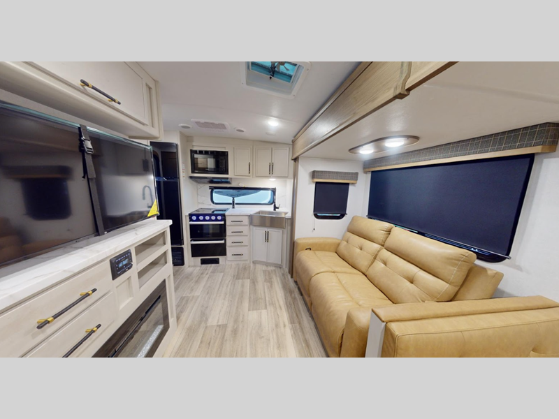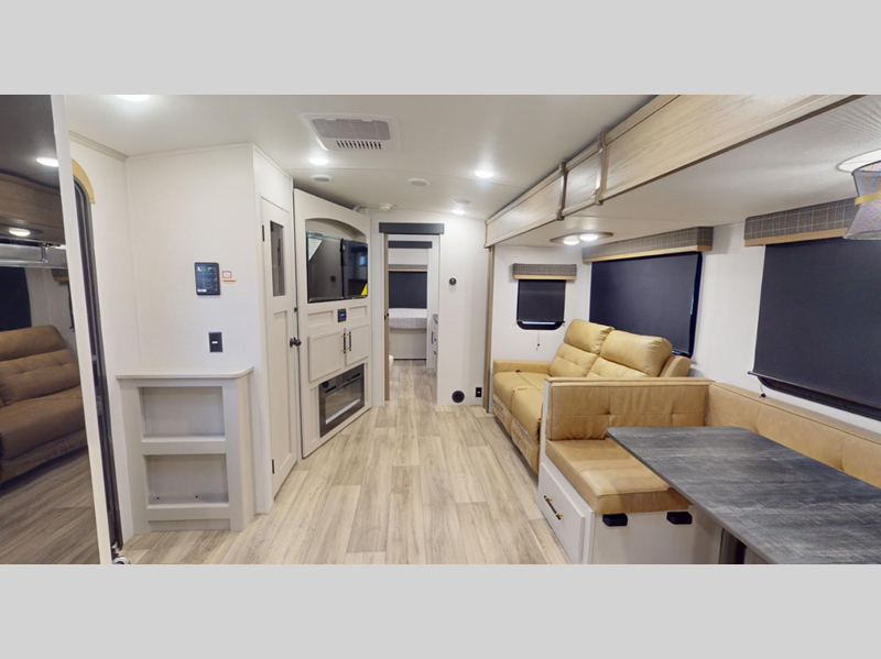 Sleeps 3 Slides 2 Length 31 ft 1 in Ext Height 11 ft 4 in Interior Color Bayport, Lexington Hitch Weight 795 lbs Dry Weight 7447 lbs Cargo Capacity 2143 lbs Fresh Water Capacity 44 gals Grey Water Capacity 78 gals Black Water Capacity 39 gals Furnace BTU 30000 btu Available Beds King Refrigerator Type 12V Refrigerator Size 10 cu ft Cooktop Burners 3 Number of Awnings 1 LP Tank Capacity 30 lbs Water Heater Type On Demand Tankless TV Info LR HD LED TV Awning Info 20' Axle Count 2 Washer/Dryer Available Yes Number of LP Tanks 2 Shower Type Standard Electrical Service 50 amp Similar Floorplans
