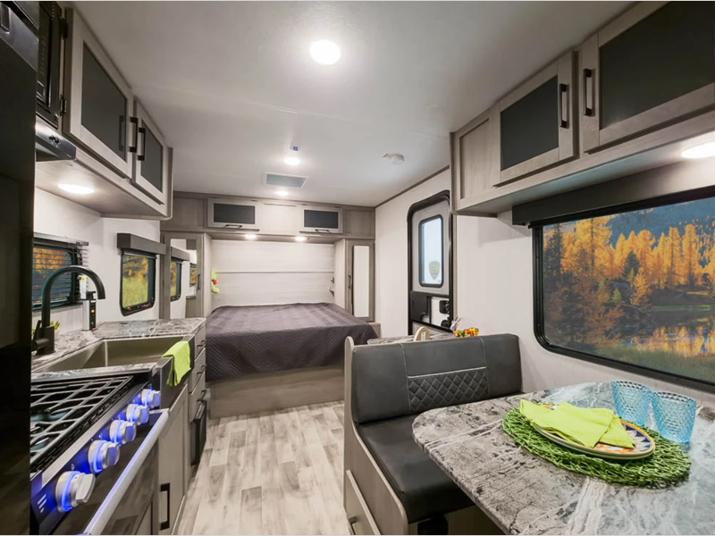 Sleeps 5 Length 21 ft 5 in Ext Height 9 ft 2 in Int Height 6 ft 8 in Interior Color Carbon, Savannah Hitch Weight 415 lbs Dry Weight 2900 lbs Cargo Capacity 1080 lbs Fresh Water Capacity 21 gals Grey Water Capacity 28 gals Black Water Capacity 28 gals Available Beds Queen Refrigerator Type 12V Refrigerator Size 10 cu ft Number of Awnings 1 LP Tank Capacity 20 lbs Water Heater Type On Demand Tankless AC BTU 13500 btu Awning Info 8' Power w/LED Light Axle Count 1 Number of LP Tanks 1 Shower Type Neo-Angled Similar Floorplans