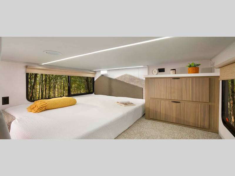 There is a heated and enclosed Accessibelly that will provide protection against the elements and road debris during transport. Residential features, such as stainless-steel kitchen appliances and stylish roller shades will let you enjoy extended stays in comfort. A tankless water heater will provide endless hot showers, and you'll stay entertained with the JBL stereo!