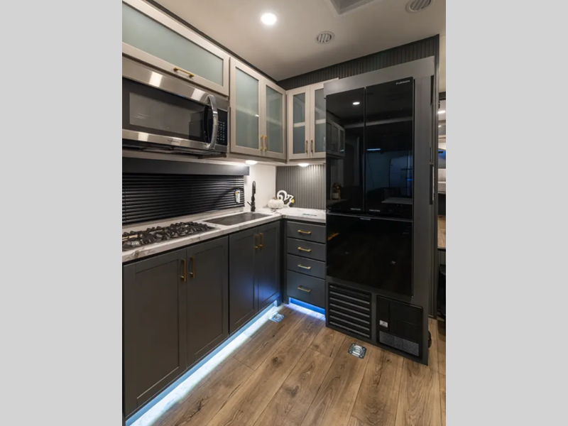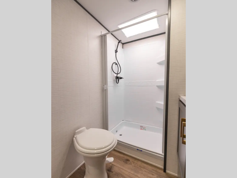 There is a rear beaver tail frame, a docking station, and a magnetic screen wall so you can let the fresh air in without letting the bugs in. You will feel right at home with decorative kitchen backsplash and LED lights, and there is a tankless water heater to provide endless hot showers after trail riding. The Alumifoil insulated enclosed underbelly will help extend your camping season, and the patio railing kit will let you enjoy more time outdoors once the toys are unloaded.